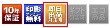 即日発送をご希望の場合、ご購入の商品が即日発送対象商品であるかどうかを各商品のページでご確認いただき、なおかつ「印影プレビューなし」でご注文ください。印影プレビューサービスをご希望される場合は、即日発送をご利用いただけませんのでご注意下さい。また、品切れの際にはご希望に沿えない場合がございますので、ご注文いただいてから必ずお電話にてご確認ください。