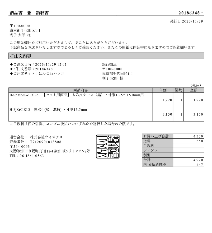※電子印鑑の納品メールは領収書(適格簡易請求書)としてご使用いただけます。