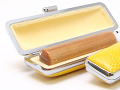 古くから親しまれている柘の中でも最高級の鹿児島県産ツゲ原木から作られたものが「薩摩本柘」です。木の成長が遅く目がしっかり詰まっているため、柘(アカネ)に比べるとキメが細かく上品な色合いです。黒水牛などに比較すれば堅牢性には劣りますが、丁寧に取り扱えば十分永くお使い頂け、また本柘独特の風合いも増していきます。
