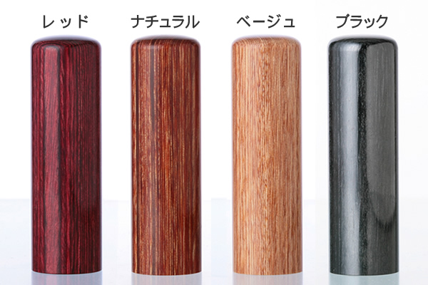 環境保全を考慮し開発された21世紀の新しい合板印材です。北方寒冷地で産出されるバーチ材(真樺)とフェノールレジン(樹脂)を高圧加熱処理することにより、木のぬくもりを保ちつつ天然木より耐久性に優れ、歪みやひび割れに強い印材となっています。独特の風合いある木目と暖かい色合いから、特に女性に人気があります。環境との調和に配慮した素材なので、官公庁・環境関連企業団体に推奨されています。
