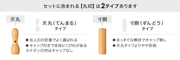 ★実印・銀行印が区別しやすい寸胴・天丸(キャップ付き)・角印タイプがおすすめです。