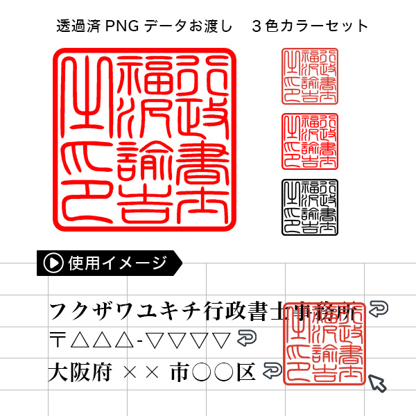 透過PNG画像、実寸21mm・朱・赤・黒3色セットの電子印鑑です。日常的な書類作成時のデジタル印としてお使いいただけます。