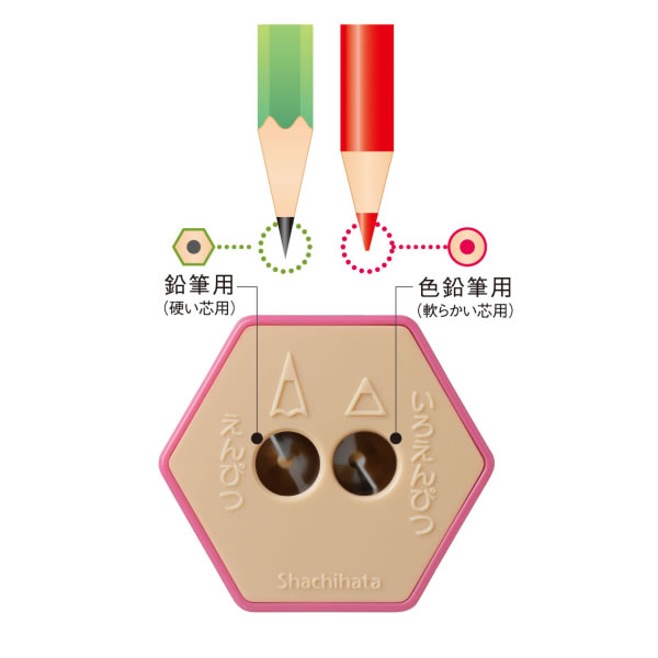 鉛筆と色鉛筆等、芯の硬さや用途に合わせて2種類の削り角度が選べます。