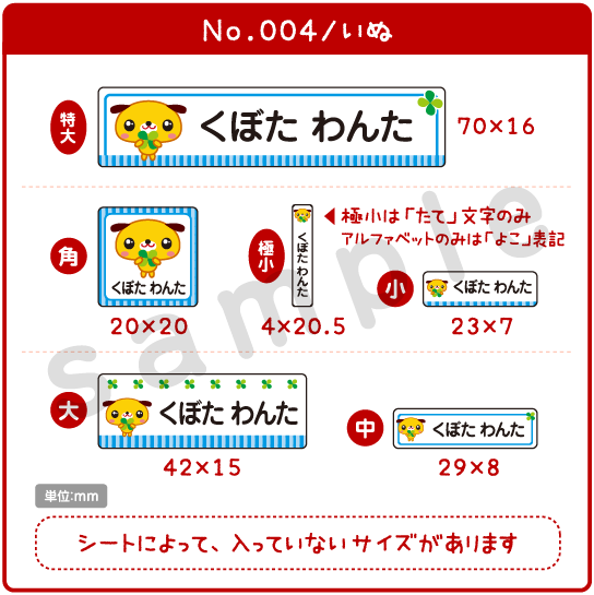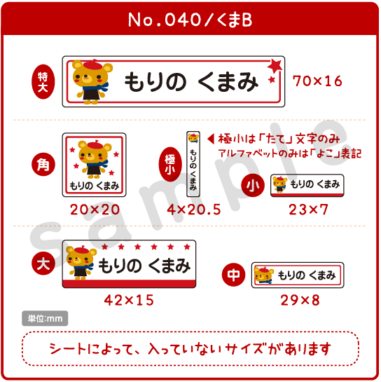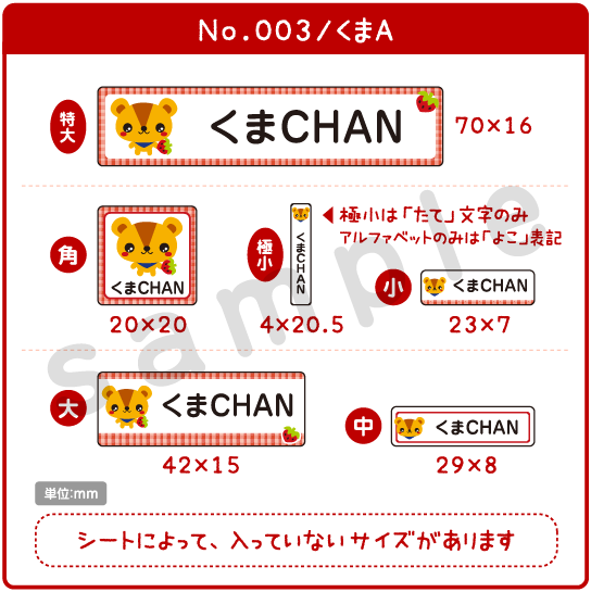 印鑑・はんこトップページ学童用品お名前づけシリーズ > お名前シール注文画面 アイロン透明type キッズA