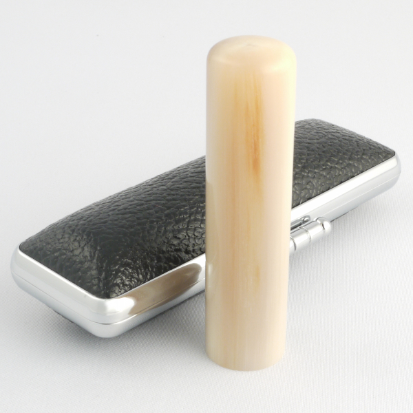 オランダ水牛の特徴である「ふ」と呼ばれる模様が比較的少なく、全体的に透明感のある印材です。 水牛の角を加工した印材の中でも耐久性や押印性に特に優れています。 オランダの植民地であったタイ産の水牛の角を使用していたことからオランダ水牛と呼ばれていますが、現在では主にオーストラリア産の水牛の角が使われています。