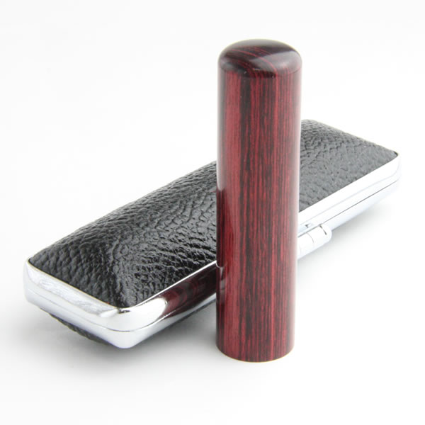 北方寒冷地で産出されるバーチ材(真樺)とフェノールレジン(樹脂)を高圧加熱処理することにより、木のぬくもりを保ちつつ天然木より耐久性に優れ、歪みやひび割れに強い印材となっています。