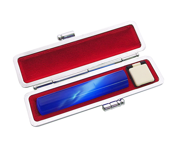 樹脂製ですが本格的な金属フレームを採用しており、光沢のある質感が人気のカラフル印鑑ケースです。合わせて12色の中からお好きな色を組み合わせてご注文頂けます。黒檀(こくたん)やカラフルな印材に合わせやすく、ご予算的にも卒業記念品にオススメしやすい印鑑ケースです。