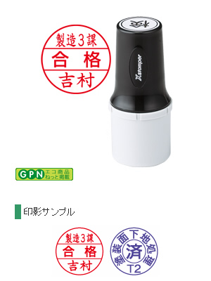印面は直径20mmの定番サイズ。部署名等を入れた複雑なデザインも可能です。