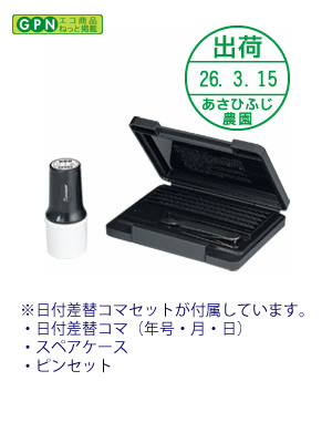 日付差替印は、付属の日付コマセットで日付を変更して、検印などに使用できます。