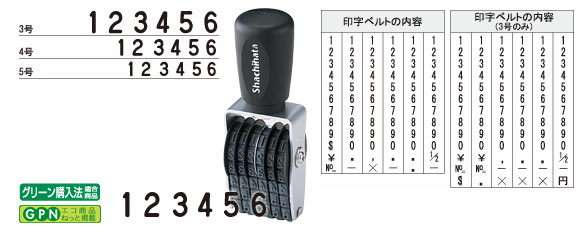 TAT用インクに対応した特殊ゴムを採用。欧文・和文日付、金額や番号表示用の回転ゴム印