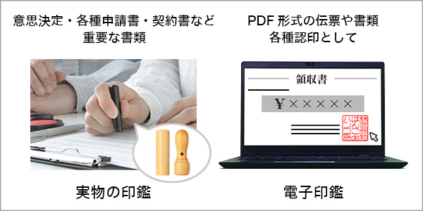 意思決定や各種申請書・契約書などの重要な書類には、実物の印鑑を押印して下さい。