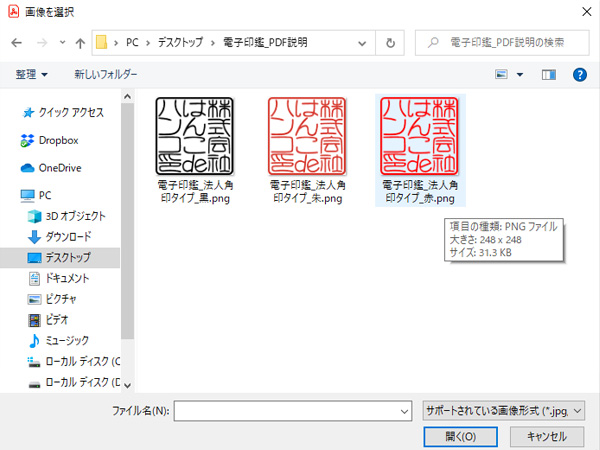 ④使用したい印影を選択。ここではPC画面で映える「赤」を選択します。