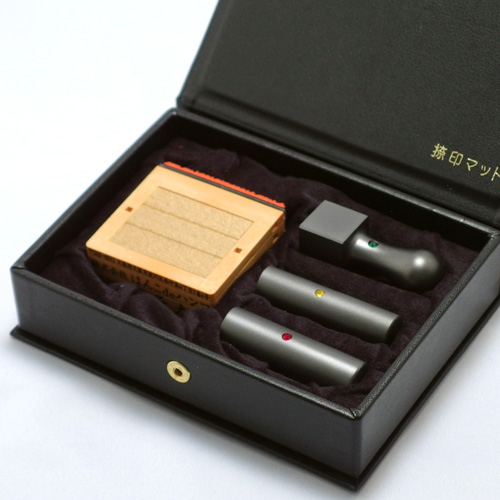 法人4点Bセット[IPチタン マットブラック] [寸胴、寸胴、角印](16.5、18、24mm)ゴム印 4段