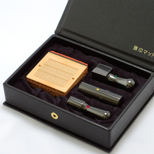 法人4点Aセット[IPチタン ミラーブラック] [寸胴、天丸、角印](18、18、24mm)ゴム印 4段