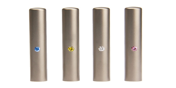 ブラストチタンの"アタリ"部分に「ジュエリーストーン」を埋め込んだ人気のチタン印鑑です。4色から選べるストーンは、スワロフスキー社の技術を受けて最先端のカットが施されたSuperCZ(キュービックジルコニア)を使用し、素材としての抜群の機能性とともに高級感を引き立たせるデザインです。