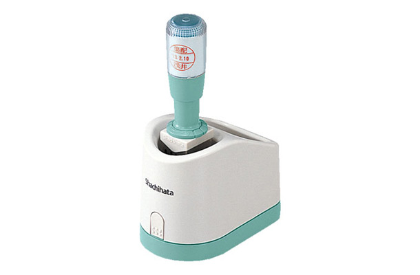 16mm丸の日付印です。調剤印や領収印、検収印などに最適。握りやすく、連続して長時間なつ印しても疲れないグリップ式ですので、デスクワークの効率をアップします!