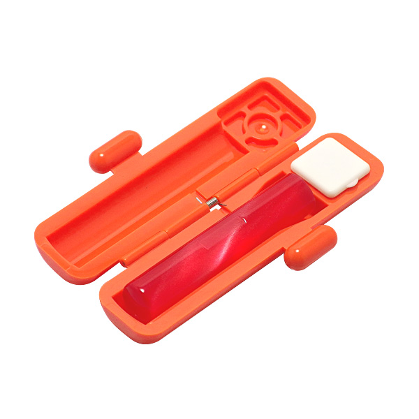 卒業記念品用のプラスチック製印鑑ケースです。企業・法人のノベルティなどにもご利用いただけます。プラスチック製の中では人気の高い印鑑ケースで鮮やかな6色からお選びいただけます。ケースの表面に学校名やロゴ・校章等を名入れすることができ、朱肉のフタにもロゴや校章を印字することができます。