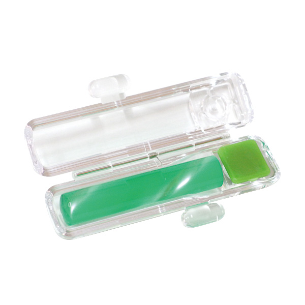 人気のブライトケースのクリアタイプです。本体が透明で中身が見えるので、カラフルな印鑑との組み合わせがオススメです。朱肉のフタをカラフルな6色よりお選びいただくことができます。(朱肉は全て朱色です)
