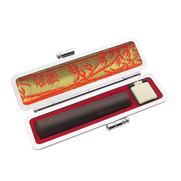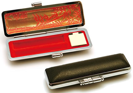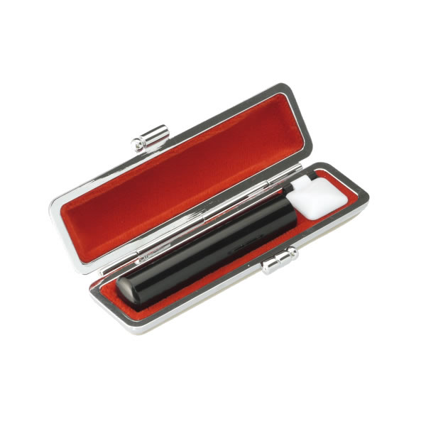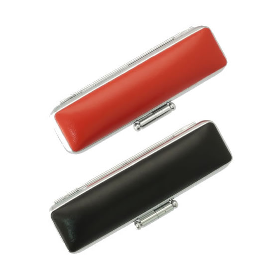 銀行印12mmと、訂正印6mmの印鑑を並べて収納できる印鑑ケースです。樹脂製ですが、表面は皮革のような質感で、卒業記念品の中でも人気の高いケースです。