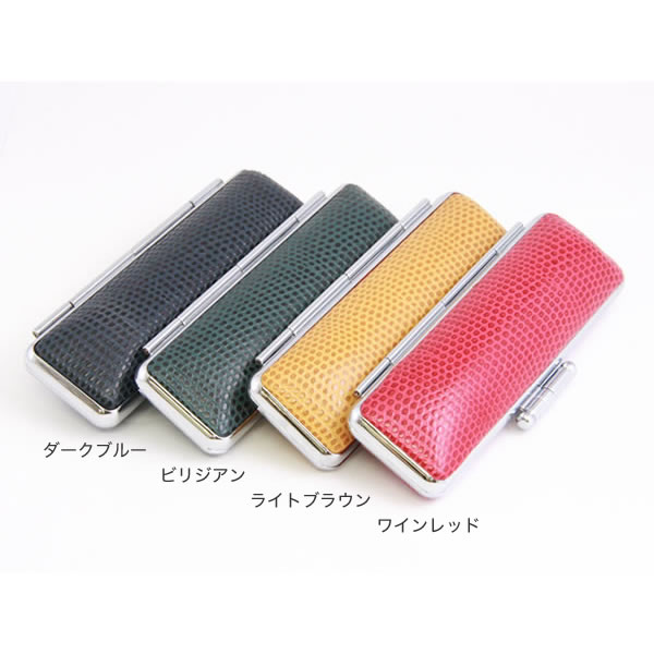 本牛皮の表面にトカゲ皮模様を型押しした印鑑ケースです。落ち着いた色合いの4色で、永くお使い頂ける人気の印鑑ケースです。